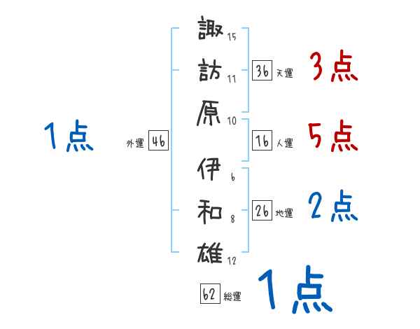 諏訪原伊和雄さんの画数の鑑定結果