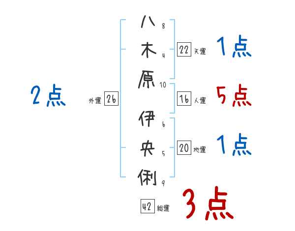 人運![]() | 八木原伊央俐さんの人運は16画の5つ星!人望が厚く大きく発展する。逆転成功が見える。 性格や才能などを表す2番目に重要な運勢です。人間関係や協調性、社会的な成功に影響します。主に20歳から50歳ぐらいまでの中年期の運勢を表します。 |