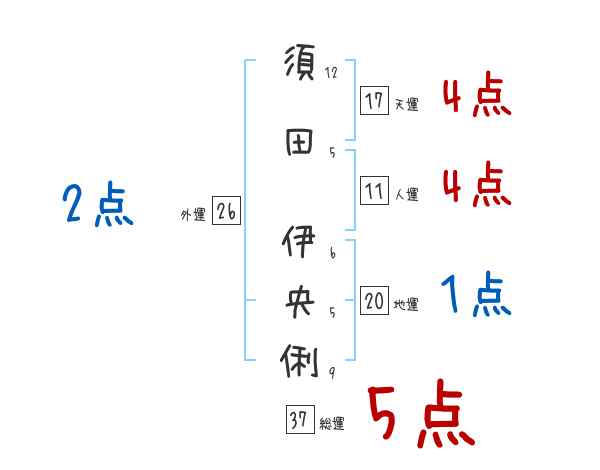 総運![]() | 須田伊央俐さんの総運は37画の5つ星!努力家で順応性に優れる。現実的な考え方ができ忠実に物事をこなす。 あなたの人生を表す1番重要な運勢です。生涯を通じて影響する総合運となり、主に50歳以降の晩年期に影響を及ぼします。 |