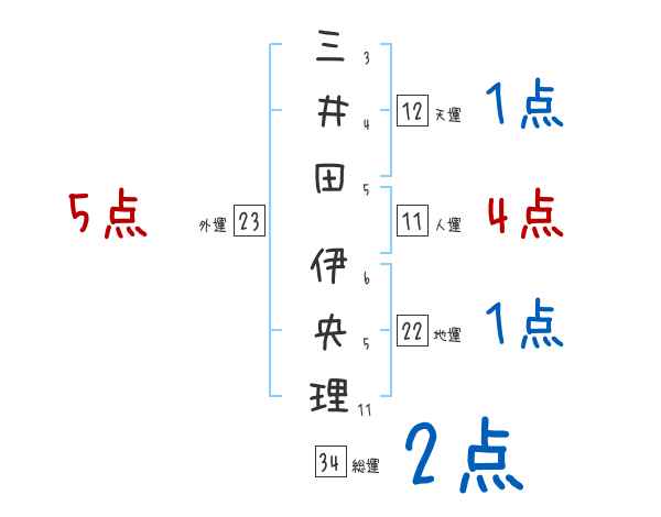外運![]() | 三井田伊央理さんの外運は23画の5つ星!想像力に優れ活力がある。一代で成功し名誉を手に入れる。 生活面を象徴する運勢です。外部から受ける影響力を表し、結婚運、家庭運や職場、環境への順応性を表します。 |