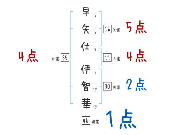 早矢仕伊智華さんの画数の鑑定結果