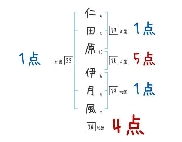 仁田原伊月風さんの画数の鑑定結果