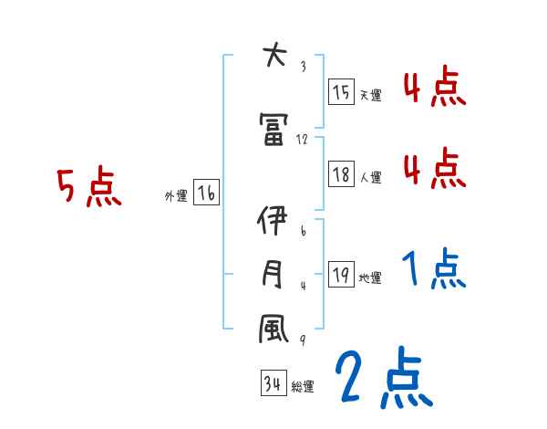大冨伊月風さんの画数の鑑定結果