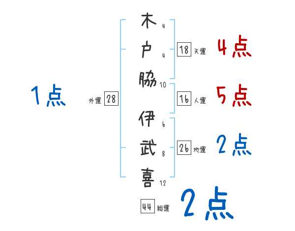 木戸脇伊武喜さんの画数の鑑定結果