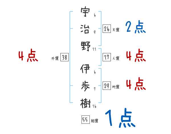 宇治野伊歩樹さんの画数の鑑定結果