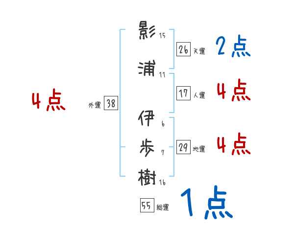 影浦伊歩樹さんの画数の鑑定結果