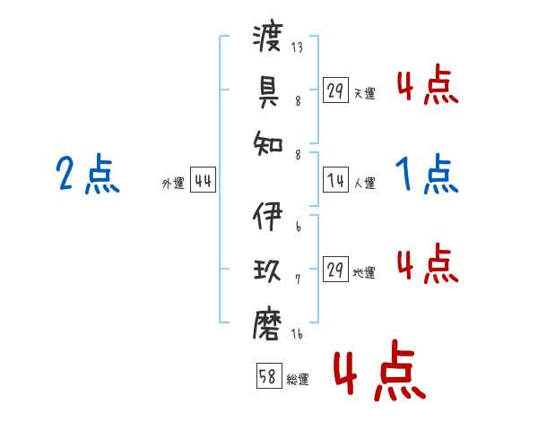 渡具知伊玖磨さんの画数の鑑定結果