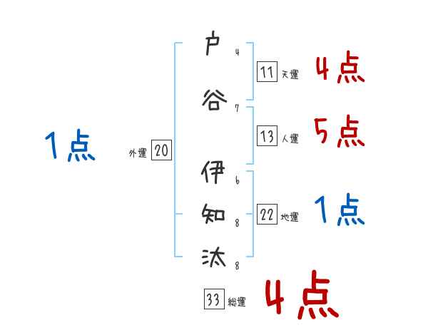 戸谷伊知汰さんの画数の鑑定結果