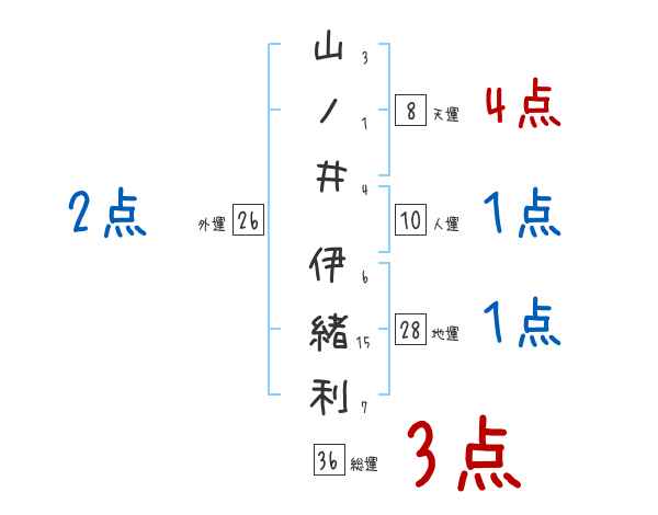 総運![]() | 山ノ井伊緒利さんの総運は36画の3つ星!先見性が豊かです。多少神経質で苦労することも。 あなたの人生を表す1番重要な運勢です。生涯を通じて影響する総合運となり、主に50歳以降の晩年期に影響を及ぼします。 |