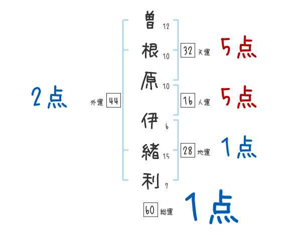 天運![]() | 曽根原伊緒利さんの天運は32画の5つ星!柔軟性があり成功する。チャンスが多く金運が良い。 家系が持つ宿命的な運勢を表します。祖先から受け継いだ苗字ですので自分の力が及びません。家柄を象徴します。 |