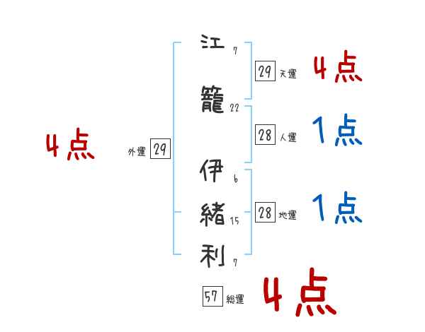 江籠伊緒利さんの画数の鑑定結果