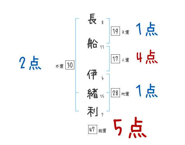 天運![]() | 長船伊緒利さんの天運は19画の1つ星!優れた才能を持ちますが、協調性が足りないことも。周りの人と協力する事を意識しましょう。 家系が持つ宿命的な運勢を表します。祖先から受け継いだ苗字ですので自分の力が及びません。家柄を象徴します。 |
