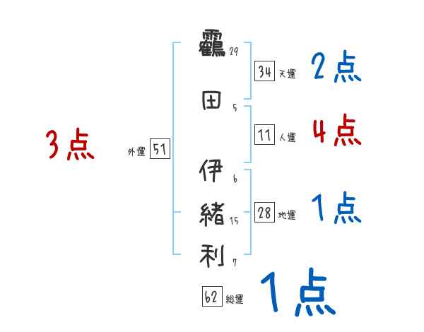 靏田伊緒利さんの画数の鑑定結果