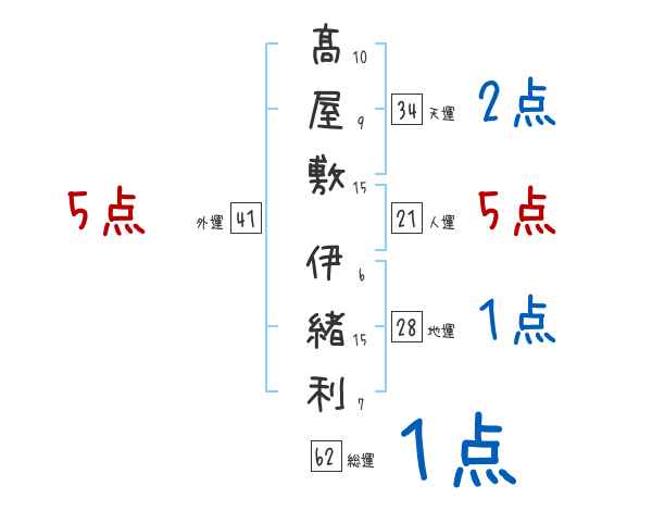 髙屋敷伊緒利さんの画数の鑑定結果