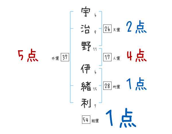 天運![]() | 宇治野伊緒利さんの天運は26画の2つ星!波瀾万丈かも。信頼できる人を大事にしましょう。 家系が持つ宿命的な運勢を表します。祖先から受け継いだ苗字ですので自分の力が及びません。家柄を象徴します。 |