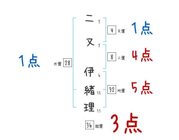 二又伊緒理さんの画数の鑑定結果
