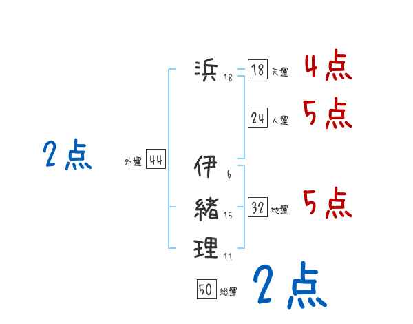浜伊緒理さんの画数の鑑定結果