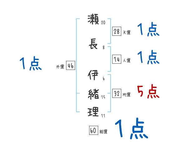 瀬長伊緒理さんの画数の鑑定結果