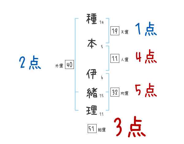 外運![]() | 種本伊緒理さんの外運は40画の2つ星!自信過剰で物事に固執するためトラブルに注意。 生活面を象徴する運勢です。外部から受ける影響力を表し、結婚運、家庭運や職場、環境への順応性を表します。 |