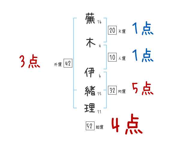 外運![]() | 蕪木伊緒理さんの外運は42画の3つ星!病気に注意。多芸であるが消極的でおとなしい。 生活面を象徴する運勢です。外部から受ける影響力を表し、結婚運、家庭運や職場、環境への順応性を表します。 |