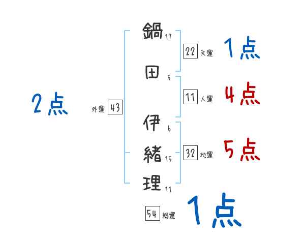 鍋田伊緒理さんの画数の鑑定結果