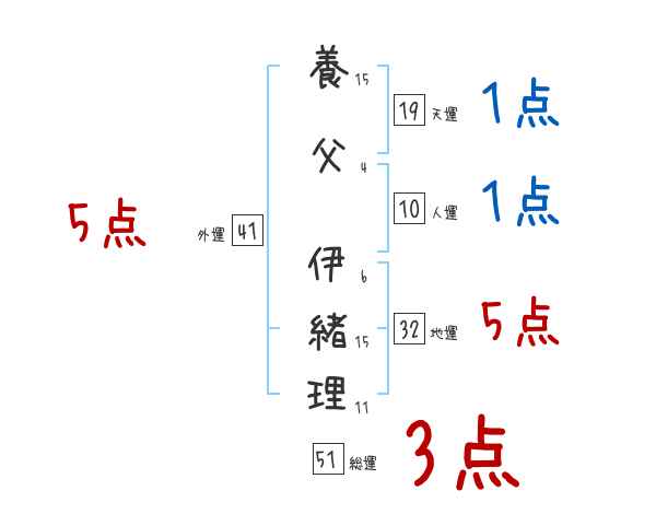 総運![]() | 養父伊緒理さんの総運は51画の3つ星!変化が激しく、危険に注意。堅実な性格。 あなたの人生を表す1番重要な運勢です。生涯を通じて影響する総合運となり、主に50歳以降の晩年期に影響を及ぼします。 |