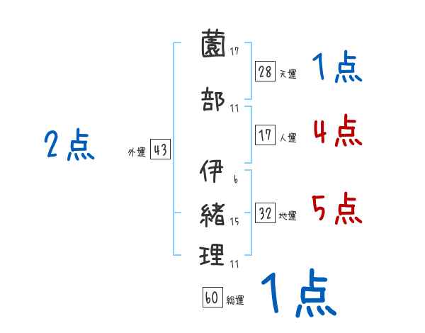 薗部伊緒理さんの画数の鑑定結果