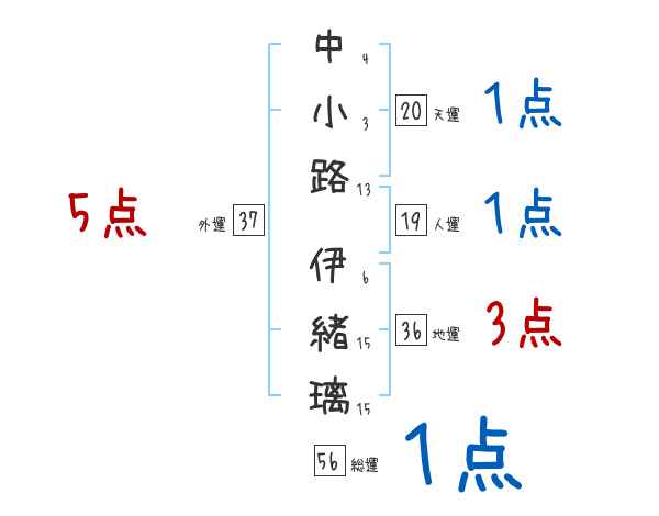 地運![]() | 中小路伊緒璃さんの地運は36画の3つ星!先見性が豊かです。多少神経質で苦労することも。 個性を表す基礎的な運勢です。性格形成や対人関係、行動力など家庭環境に影響されます。主に誕生してから20歳くらいまでの若年期の運勢を表します。 |