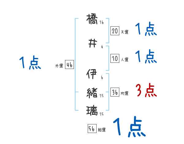 地運![]() | 橋井伊緒璃さんの地運は36画の3つ星!先見性が豊かです。多少神経質で苦労することも。 個性を表す基礎的な運勢です。性格形成や対人関係、行動力など家庭環境に影響されます。主に誕生してから20歳くらいまでの若年期の運勢を表します。 |