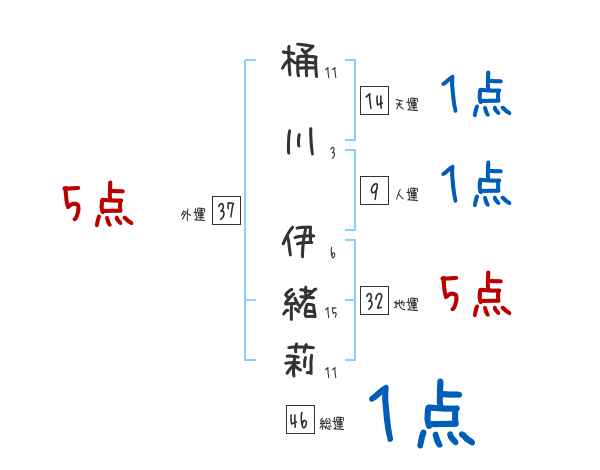 天運![]() | 桶川伊緒莉さんの天運は14画の1つ星!人に対して優しいがストレスを溜め込みがち。人間関係のトラブルを避けるよう気をつけましょう。 家系が持つ宿命的な運勢を表します。祖先から受け継いだ苗字ですので自分の力が及びません。家柄を象徴します。 |