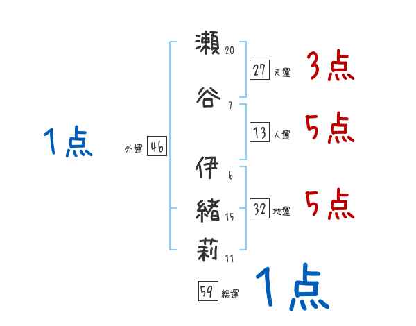 瀬谷伊緒莉さんの画数の鑑定結果