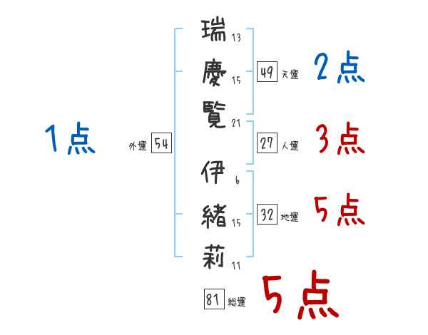瑞慶覧伊緒莉さんの画数の鑑定結果