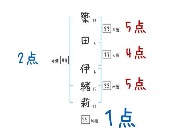 天運![]() | 簗田伊緒莉さんの天運は23画の5つ星!想像力に優れ活力がある。一代で成功し名誉を手に入れる。 家系が持つ宿命的な運勢を表します。祖先から受け継いだ苗字ですので自分の力が及びません。家柄を象徴します。 |
