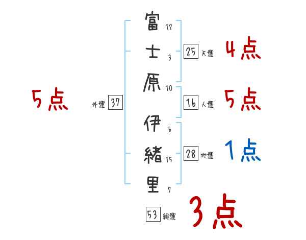富士原伊緒里さんの画数の鑑定結果