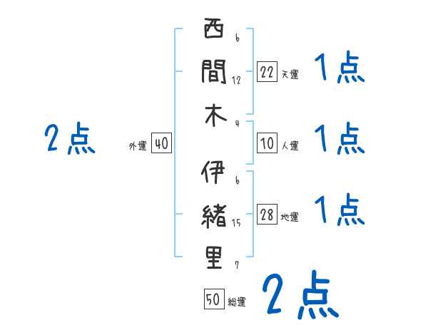 西間木伊緒里さんの画数の鑑定結果