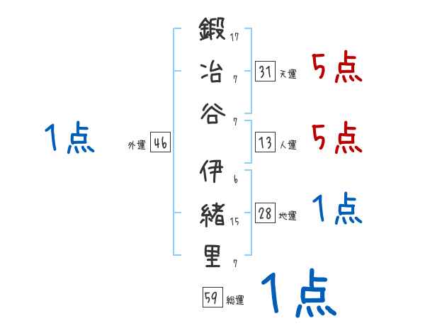 鍛冶谷伊緒里さんの画数の鑑定結果