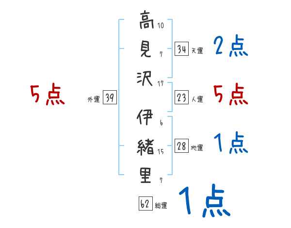 高見沢伊緒里さんの画数の鑑定結果