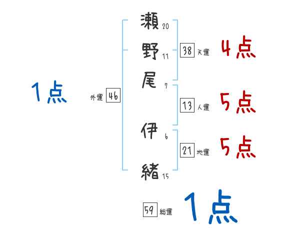 瀬野尾伊緒さんの画数の鑑定結果