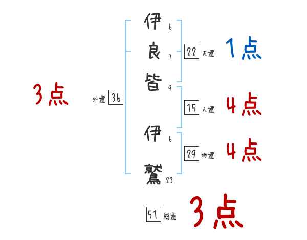 伊良皆伊鷲さんの画数の鑑定結果