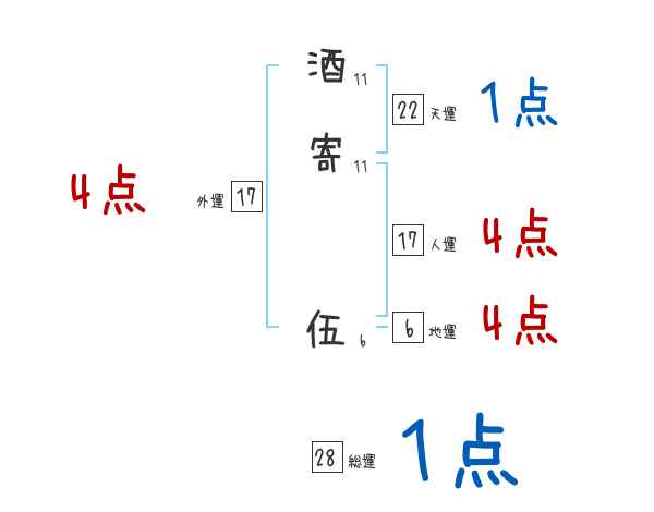 酒寄伍さんの画数の鑑定結果
