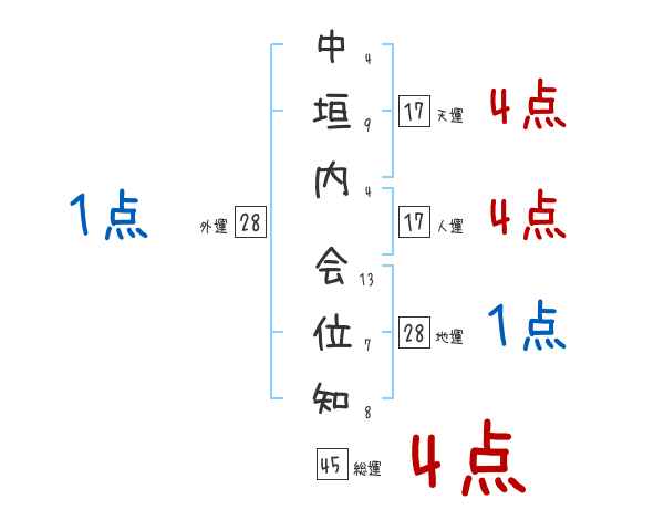 外運![]() | 中垣内会位知さんの外運は28画の1つ星!家庭環境に注意。スポーツで活躍できる能力があるかも。 生活面を象徴する運勢です。外部から受ける影響力を表し、結婚運、家庭運や職場、環境への順応性を表します。 |