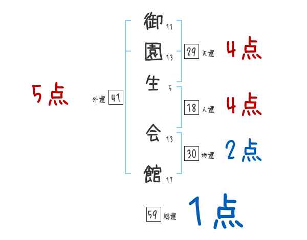御園生会館さんの画数の鑑定結果