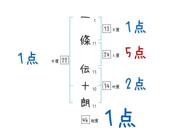 一條伝十朗さんの画数の鑑定結果