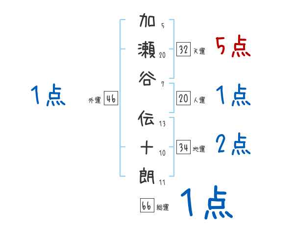 天運![]() | 加瀬谷伝十朗さんの天運は32画の5つ星!柔軟性があり成功する。チャンスが多く金運が良い。 家系が持つ宿命的な運勢を表します。祖先から受け継いだ苗字ですので自分の力が及びません。家柄を象徴します。 |
