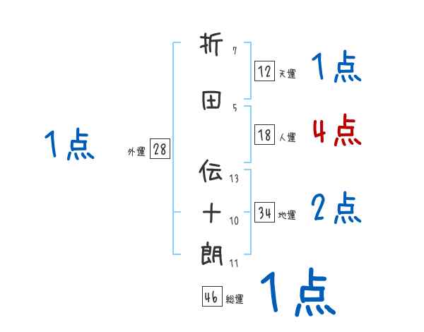折田伝十朗さんの画数の鑑定結果