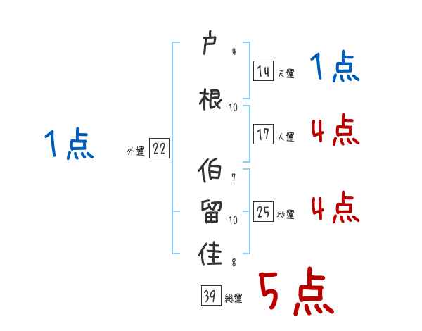 戸根伯留佳さんの画数の鑑定結果