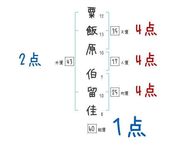 粟飯原伯留佳さんの画数の鑑定結果