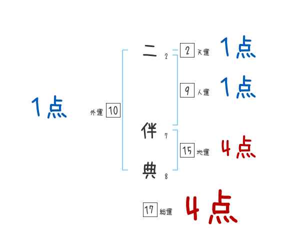 総運![]() | 二伴典さんの総運は17画の4つ星!積極的な行動力。地位を気づき財産を手に入れる。純粋な心と直感力。 あなたの人生を表す1番重要な運勢です。生涯を通じて影響する総合運となり、主に50歳以降の晩年期に影響を及ぼします。 |