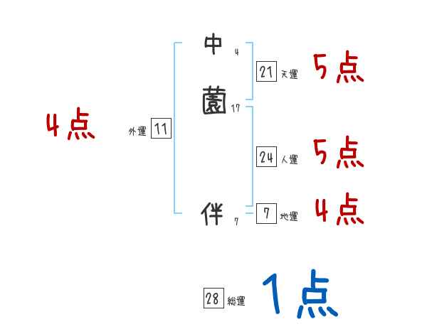 中薗伴さんの画数の鑑定結果