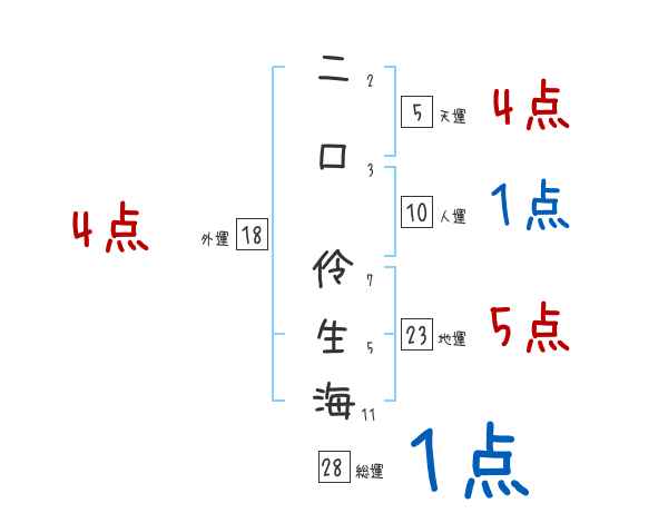 二口伶生海さんの画数の鑑定結果
